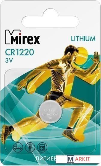 Markit » Батарейки, аккумуляторы, зарядные » Батарейка Mirex CR1220 литиевая блистер 1 шт. 23702-CR1220-E1