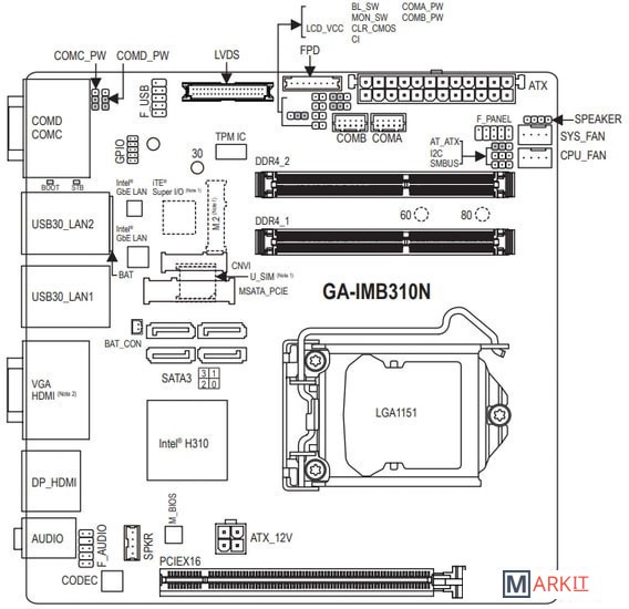 На материнской плате имеется внутренний коннектор Mini-PCIe (PCI Express 2.0) и разъем USIM на тыльной стороне печатной платы.