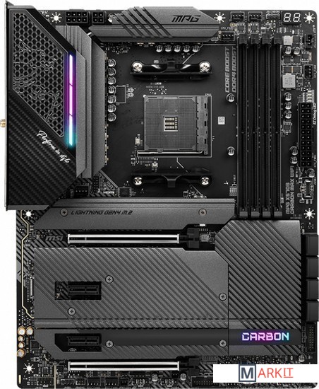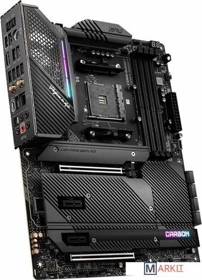Поддержка процессоров AMD Ryzen 5000 Series, 5000 G-Series, 4000 G-Series, 3000 Series, 3000 G-Series, 2000 Series and 2000 G-SeriesПоддержка памяти DDR4 с частотой до 5300 МГц (в режиме разгона)Высокоскоростные интерфейсы: слоты PCIe 4.0, Lightning Gen 4 x4 M.2, USB 3.2 Gen 2Мощная система питания: схема 14+2 с удвоителями фаз и цифровым управлением, 8+4-контактный разъем питания процессора, технологии Core Boost и DDR4 BoostЭффективная система охлаждения: большой радиатор с тепловой трубкой, термопрокладки на транзисторах с теплопроводностью 7 Вт/(м·K), дополнительные термопрокладки на дросселях, радиаторы Shield Frozr на слотах M.2Иллюминация Mystic Light с гибкой регулировкой: 16,8 млн цветов и несколько визуальных эффектов, подключение внешней адресуемой и неадресуемой подсветкиКонтроллеры 2.5G Ethernet (с трафик-менеджером LAN Manager) и Intel Wi-Fi 6E: высокоскоростное и стабильное проводное и беспроводное сетевое подключение для широкого спектра приложенийАудиосистема Audio Boost 5: высококачественное звучание, создающее неповторимую атмосферу в играхВысококачественная конструкция: 6-слойная печатная плата с увеличенным содержанием медиПредустановленная панель ввода/вывода: защищает от электромагнитных помех и облегчает установку материнской платы