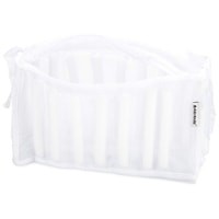 Мешок для стирки обуви предназначен для ухода за вашими вещами. Особая конструкция мешка защищает обувь от внешнего воздействия стиральной машины. Поролоновые вставки смягчают трение о барабан, тем самым предотвращая появление повреждений на нём и на вещах. Пластиковая молния с застёжкой безопасна для стиральной машины и обуви. С течением времени мешок сохраняет свой белый цвет, не тускнеет и не изнашивается.