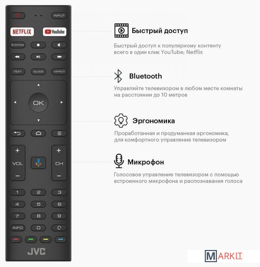 JVC RC10 – черный с голосовым управлением и кнопками Netflix, YouTube |